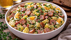 Готовлю этот баварский салат вместо ужина: основа — картошка и колбаски.