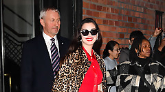Энн Хэтэуэй вышла на публику в облегающем платье и леопардовом пальто