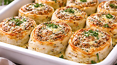 Намазываю фарш на лаваш и режу на улитки: простое блюдо в духовке — сытно,